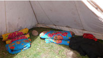 4、 瓦作村有8個自然村,每村人口在200~500不等,全村人口約3000多人。瓦作小學學生118人,我到校時有上課學生58人,其餘幫助家裏秋收。瓦作村小1999年由鄉投資10萬元建造了現在的土木結構校舍,近10年來再無任何費用投入,要修繕全由村小自行承擔,所以學校本身無力修繕,校舍已十分破落。學校有長年代課教師一名,月工資200元,主教藏語文和數學。漢語由村幹部輪流教學。住校學生有30幾名,兩間宿舍,各可住15名左右,全都地鋪。宿舍住不下者,在操場上所搭帳篷內居住。一個孩子每月助學金30~40元/月。